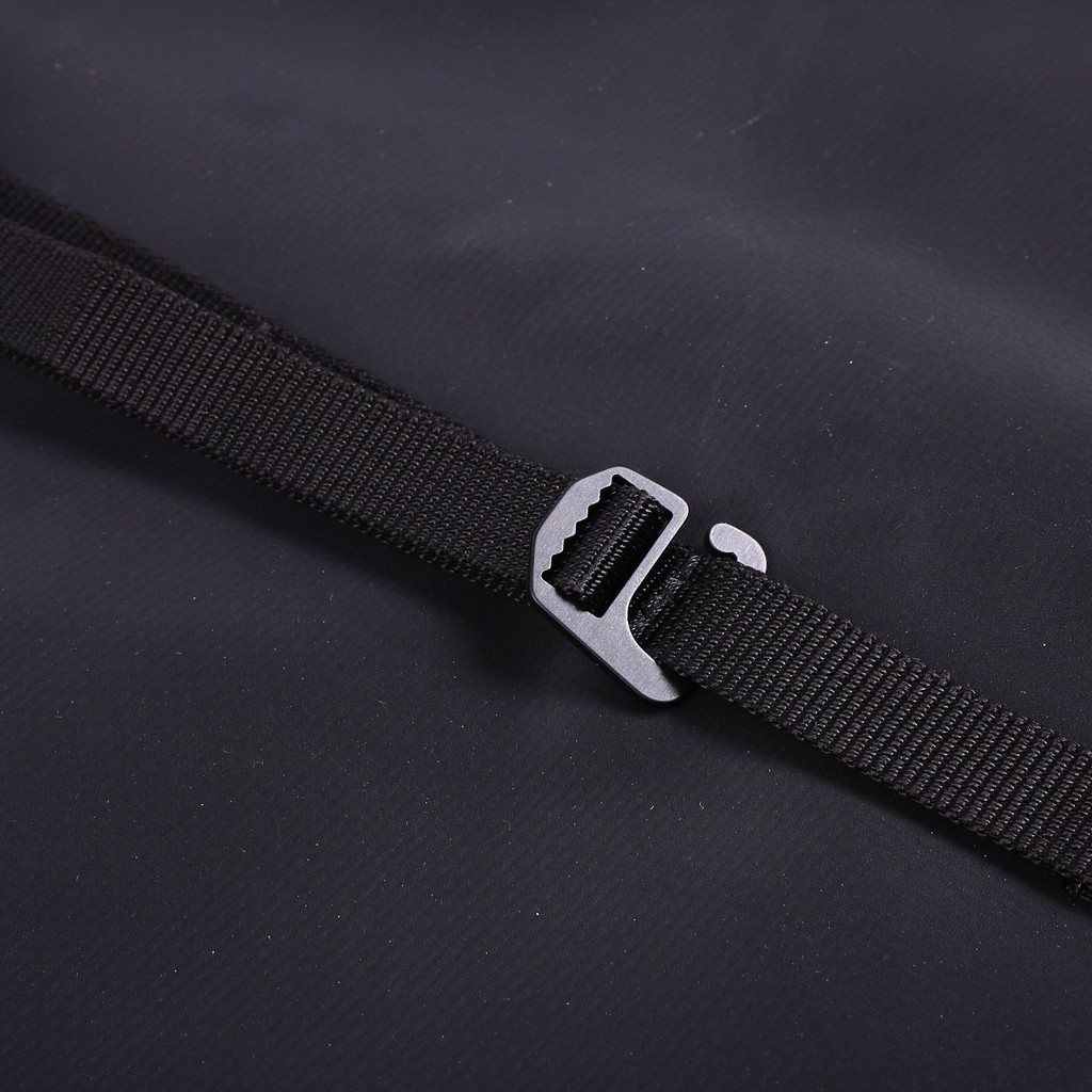 O zabezpieczenie transportowanych lin dbają dwa metalowe ściągacze, pozwalające na osiągnięcie maksymalnie kompaktowych wymiarów torby. Dzięki temu możemy ją wrzucić do środka głównego plecaka ze szpejem. O wygodę transportu dba obita gąbką poduszka zainstalowana na regulowanym pasie naramiennym.